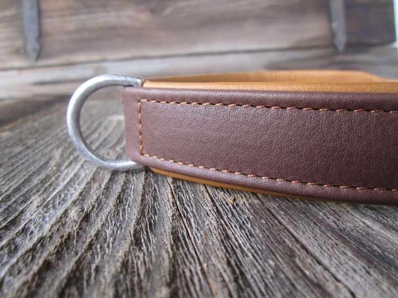 Material: Einheimisches Rindsleder ökologisch gegerbt und natürlich eingefettet. Nickelfreie Schnalle und D-Ring aus solidem Messing mit echter Altsilber-Oberfläche.