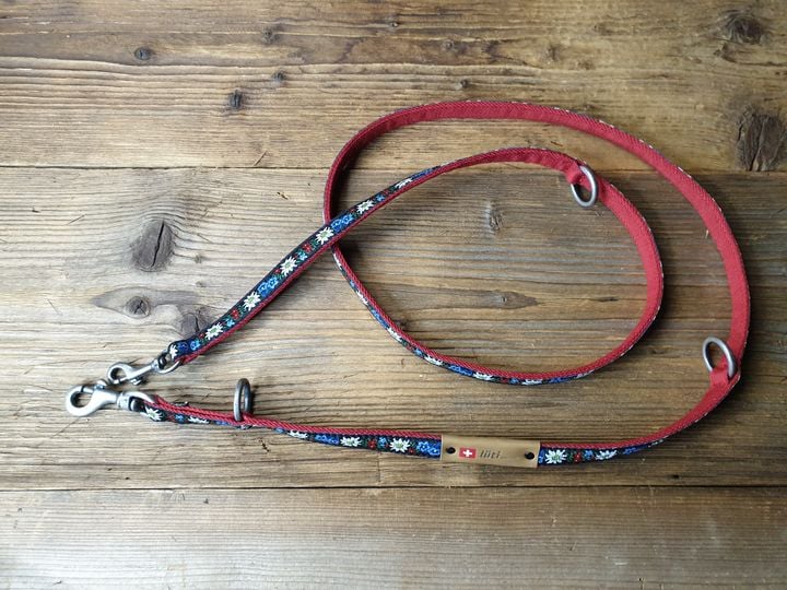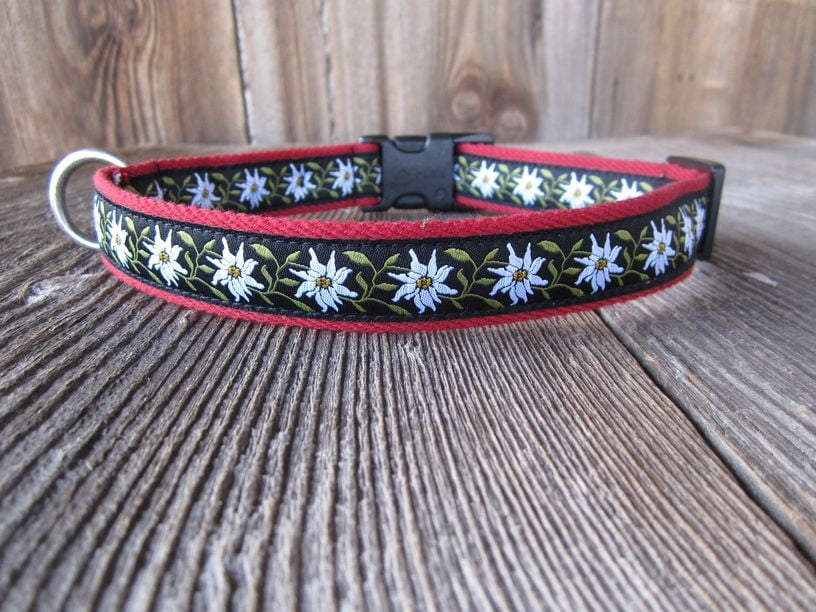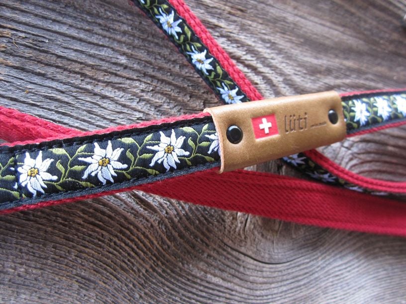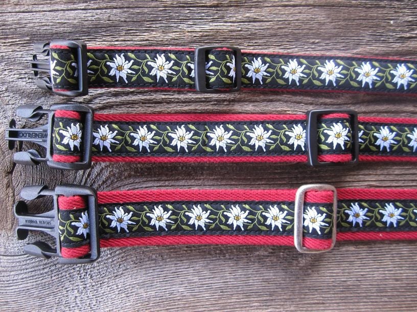 Farbe: Band rot, Webborte schwarz mit Edelweiss Motiven