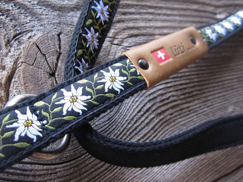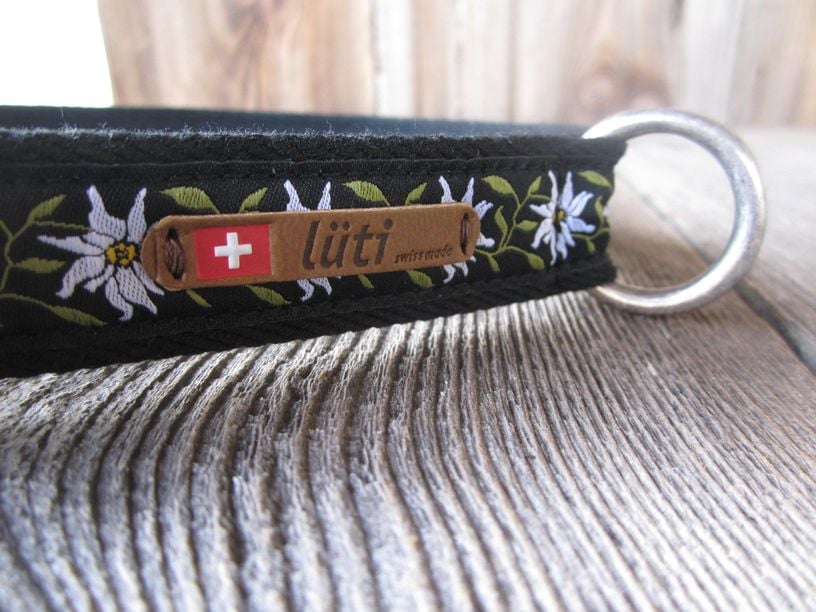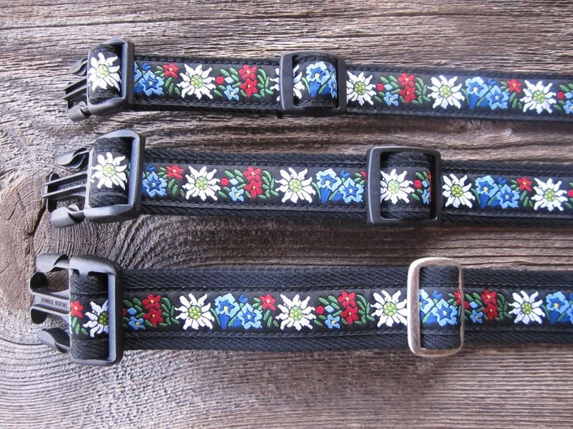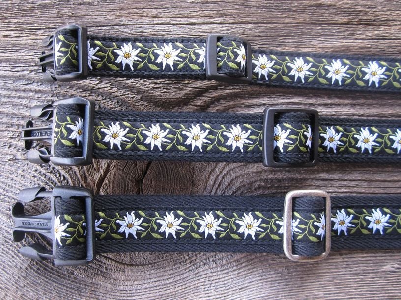 Farbe: Band schwarz, Webborte schwarz mit Edelweiss Motiven